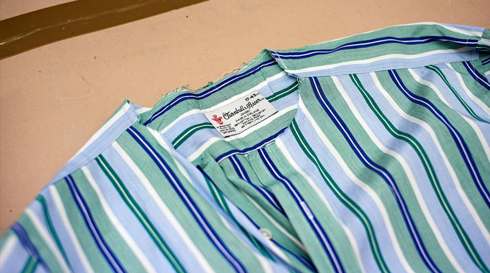 Turnbull keeps some extra cloth for every bespoke shirt that goes through its factory, ensuring that bespoke customers can have parts of their shirts replaced if disaster strikes and they snag a sleeve on a nail, or their morning coffee makes a break for freedom down their front.