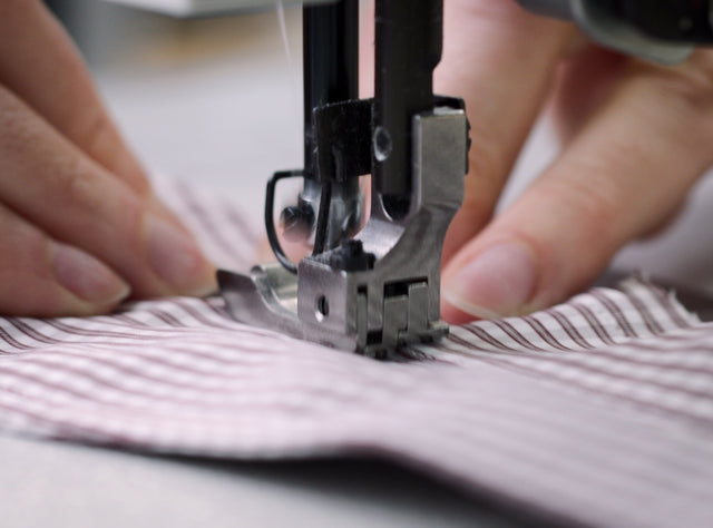 Following rigorous quality checks, the final element of the process is sewing on the labels—by hand, of course. It’s a mark of pride in our work, and a stamp of quality from our team.