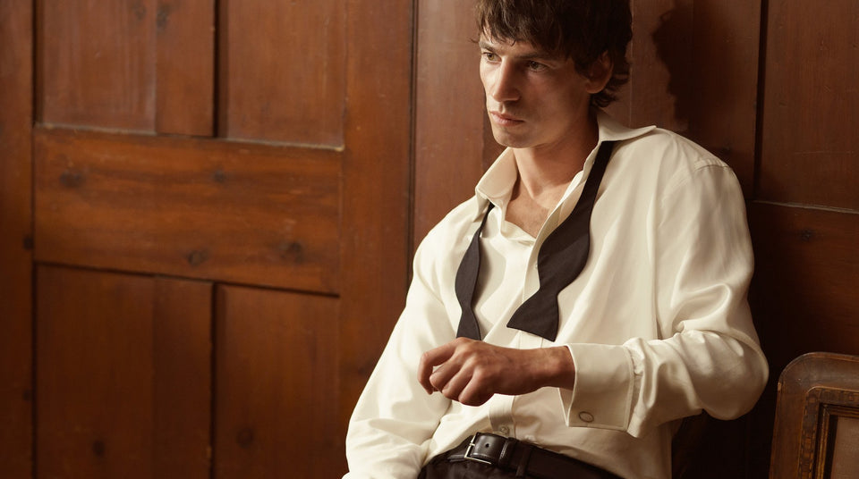 The photoshoot was inspired by performers and specifically the moments backstage before the show begins. The images, taken by Rick Pushinsky and styled by David Nolan, showcase the craftsmanship of the shirts, and the drape and beauty of such a fine cloth that can be worn for any special event—a standout choice for evening wear. Take a look at some of the behind-the-scenes images below.