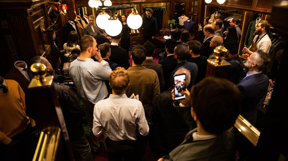 Following the conversation and Q&A, guests were invited to an exclusive first-look of the recently released Silk Shirt capsule collection, with drinks being supplied by our friends at Berry Bros. & Rudd.
