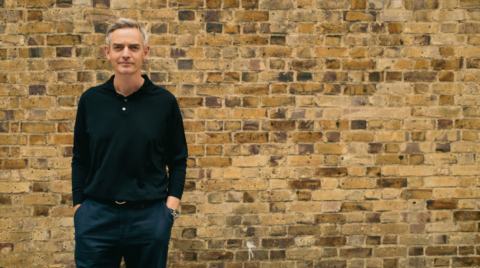 Toby wears the Turnbull & Asser Cecil merino wool polo shirt.