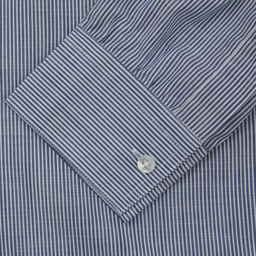 Our Weekend Fit shirts offer a relaxed alternative to a classic Turnbull dress shirt; with an easier fit and two military-inspired pockets on the chest. In luxurious striped cotton chambray, this shirt will only improve with each wash and wear, softening gently over time. We like to wear ours with the sleeves rolled up, tucked into breezy navy linen trousers.