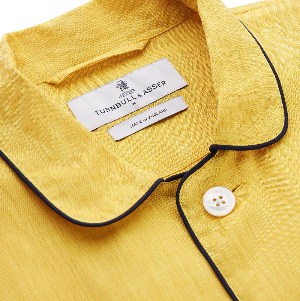 These soft yellow pyjamas are one of this season’s signature pieces, cut in our new ‘modern fit’ which is neither too roomy nor too slim. In fine Italian linen with a wonderful drape and fluidity, they are equal parts comfortable and elegant. The shirt features three patch pockets and a revere collar. We dare say it’s even smart enough to wear out and about in warm weather with some sleek navy linen trousers beneath. The trousers feature an elasticated hem and buttoning fly. Perfect for relaxed weekends at home with the papers and a pot of coffee in-hand.
