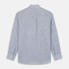 Sky Blue Linen Stripe Weekend Fit Shirt with Derby Collar